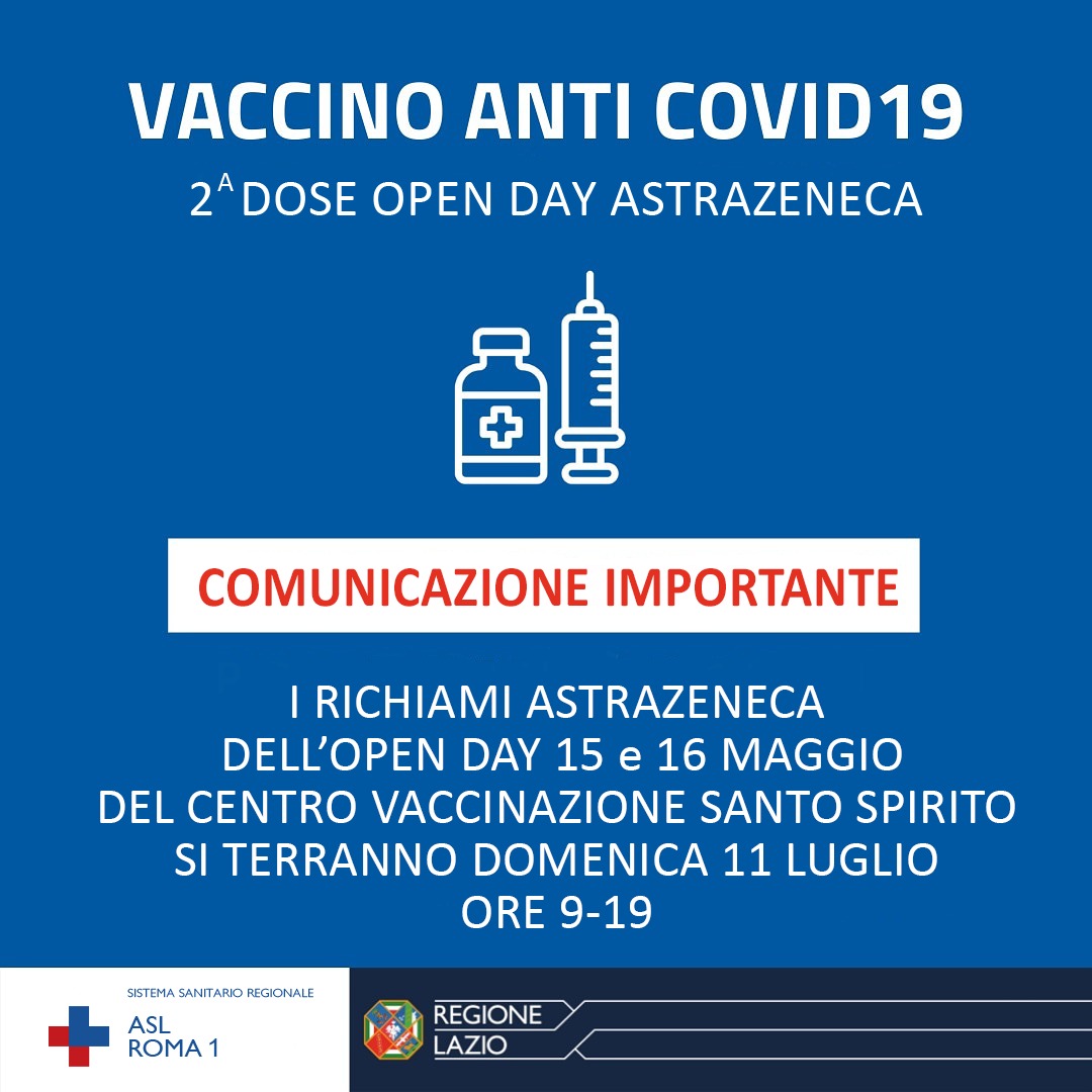 Open Day AstraZeneca seconda dose sito vaccinale Santo Spirito. Avviso.