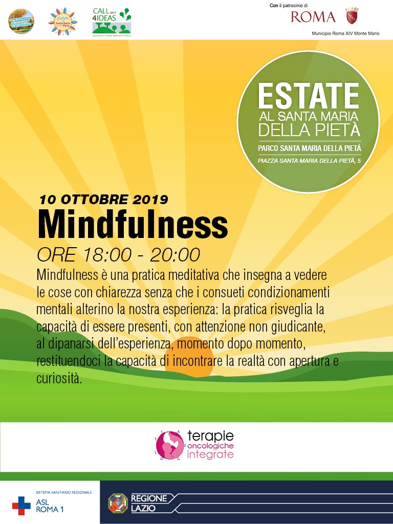 10 ottobre 2019. Mindfulness Giovedì 10 ottobre, dalle ore 18.00 alle 20.00, nella verde cornice del Parco di ...