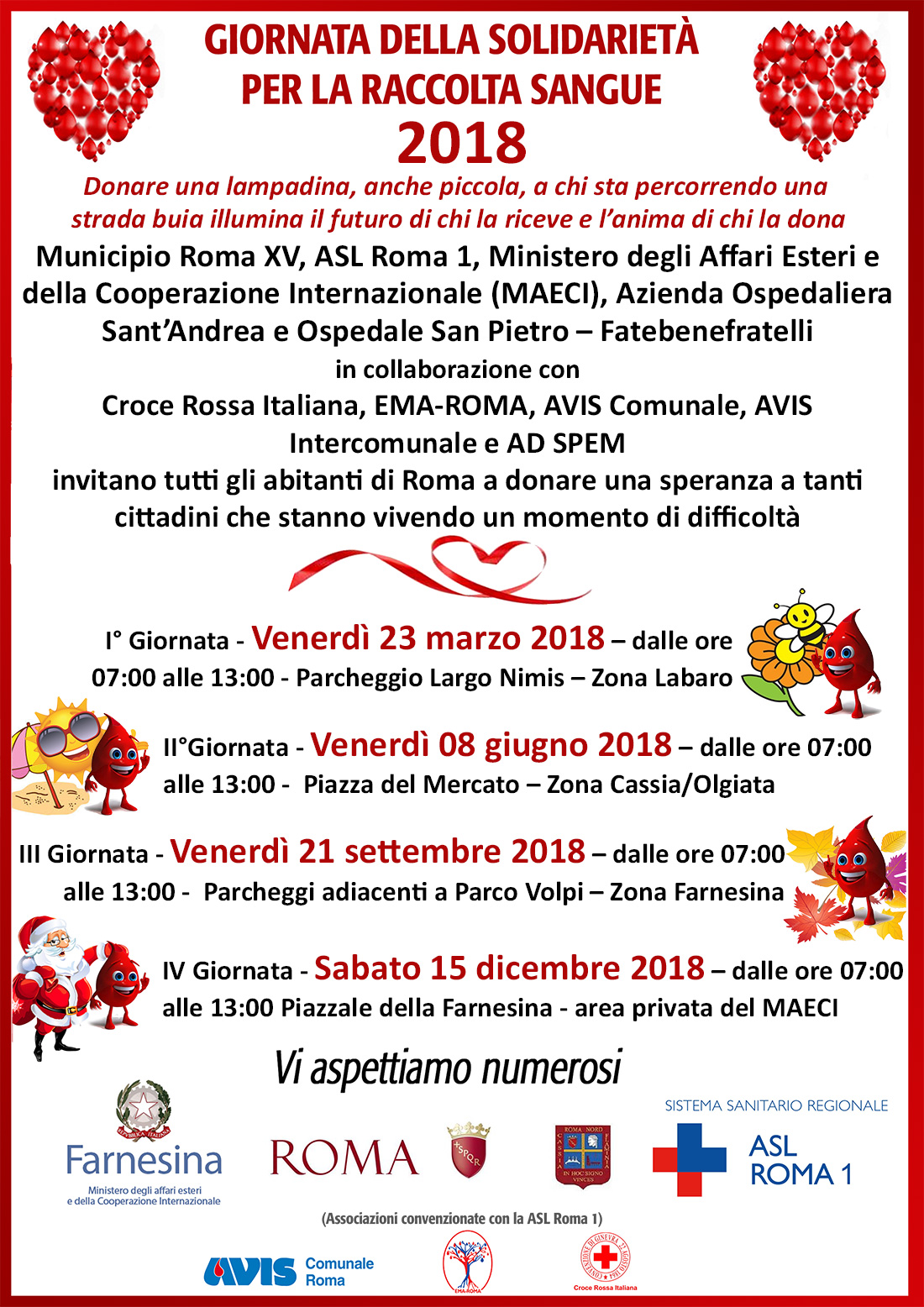Giornata della solidarietà per la raccolta sangue: tutti gli appuntamenti del 2018