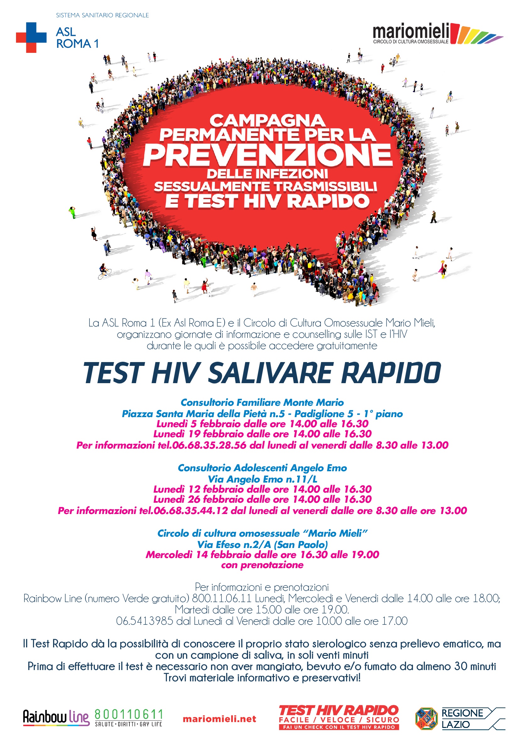 Anche a febbraio la ASL Roma 1 e il Circolo di Cultura Omosessuale Mario Mieli, organizzano giornate di inform...