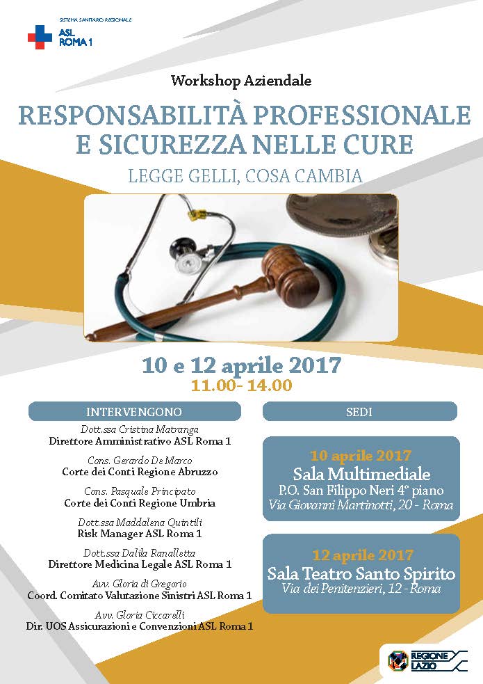 Si terrà il 10 e il 12 aprile il Workshop Aziendale "Responsabilità Professionale e Sicurezza nelle Cure. Legg...