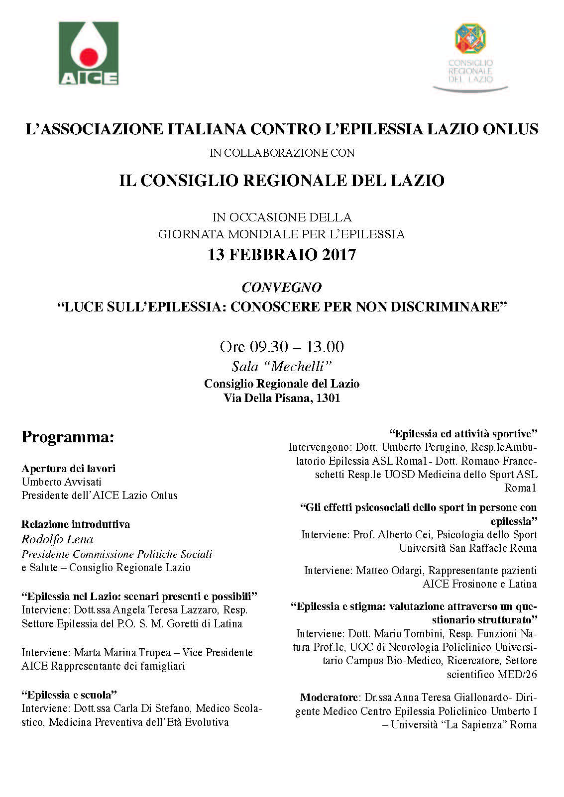 In occasione della Giornata Mondiale dell’Epilessia il 13 febbraio p.v. presso il Consiglio Regionale del Lazi...