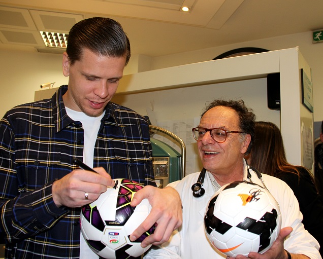 Wojciech Szczesny, portiere di AS Roma, al DH Oncoematologico del Santo Spirito