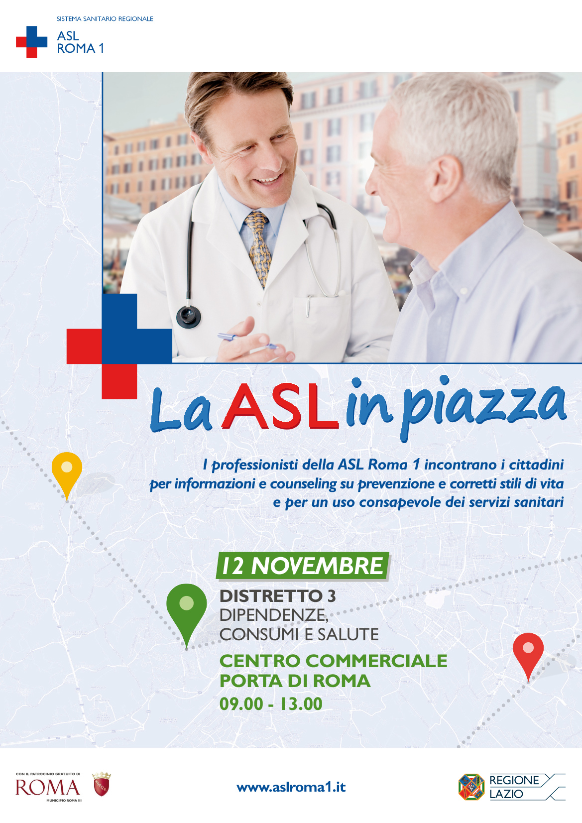 Siamo arrivati al quarto appuntamento de' La ASL in piazza, il tour nei 6 distretti sanitari della ASL Roma 1 partito il 22 ottobre e che fino alla fine di novembre porterà i professionisti della salute dell'Azienda ogni domenica in una piazza romana.